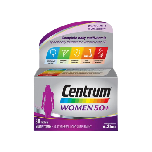 Centrum Women 50+ is a specially formulated multivitamin designed to meet the changing nutritional needs of women over the age of 50. With a balanced blend of vitamins and minerals, it helps support vitality, bone health, immunity, and overall wellbeing in later life.